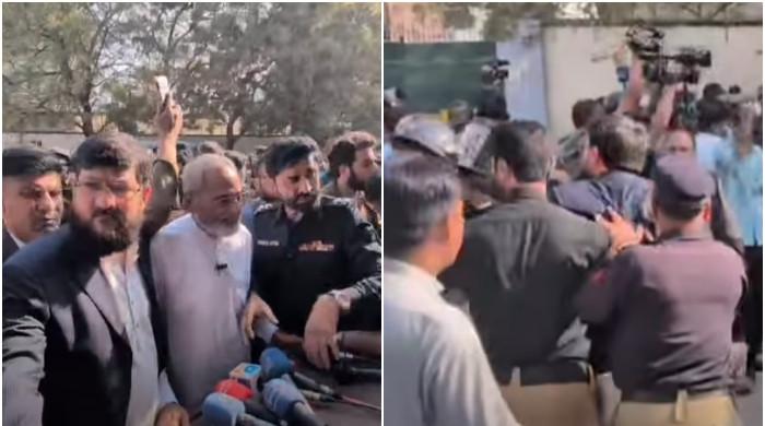 کراچی میں جماعت اسلامی کی پریس کانفرنس کے دوران رکن سندھ اسمبلی محمد فارق سمیت متعدد افراد زیر حراست