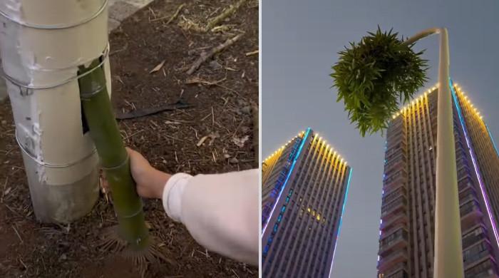 اسٹریٹ لائٹ کے کھمبے میں اُگنے والا بانس کا پودا، دیکھنے والے دنگ رہ گئے