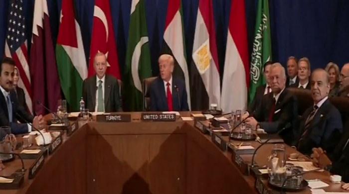 ٹرمپ کی مسلم رہنماؤں سے ملاقات—فوٹو: اسکرین گریب امریکی صدر ڈونلڈ ٹرمپ کی عرب اور مسلم رہنماؤں سے نیو یارک…