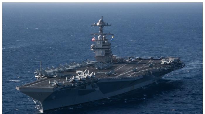 اس سے پہلے کہا گیا تھا کہ امریکی بحری بیڑے USS Gerald R. Ford میں آگ لگ گئی تھی__فوٹو: غیر…