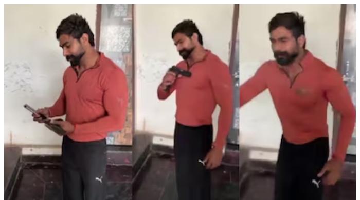 کیمرے کے پیچھے موجود شخص کو یہ کہتے بی سنا گیا کہ ‘چلا مت دینا بھائی’__فوٹو: اسکرین شاٹ بھارتی دارالحکومت…