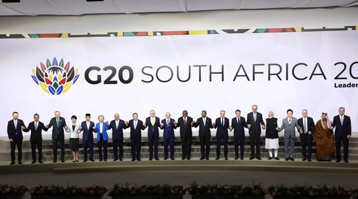 فوٹو: اے ایف پی جوہانسبرگ: جی 20 کے سربراہی اجلاس کے مشترکہ اعلامیے میں فلسطین، سوڈان، یوکرین اور کانگو کے…