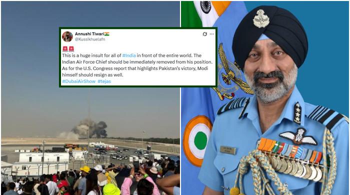 فوٹو: ایکس دبئی میں ائیر شو کے دوران بھارت کا جنگی طیارہ تیجس گرنے کے بعد بھارتیوں نے اپنی فضائیہ…