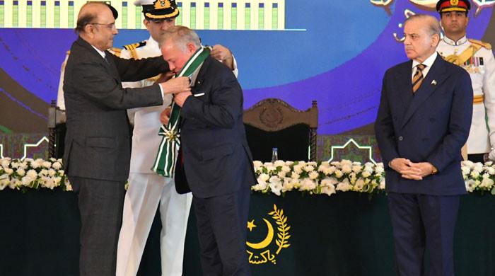 شاہِ عبداللہ دوئم نے صدرمملکت کواردن کے ایوارڈ’’وسامُ النّہضہ المرصّع‘‘سےنوازا، یہ ایوارڈ سربراہانِ مملکت اور معزز شخصیات کو دیاجاتا ہے—…
