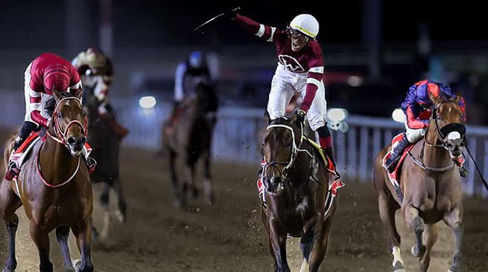 عالمی گھڑسواری کے مقابلے میں اعلیٰ نسلوں سے تعلق رکھنے والے گھوڑوں نے حصہ لیا/ فوٹو گلف نیوز دبئی میں…