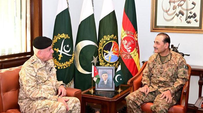 فوٹو: آئی ایس پی آر چیف آف ڈیفنس اسٹاف اور آرمی چیف فیلڈ مارشل سید عاصم منیر سے اردن کی…